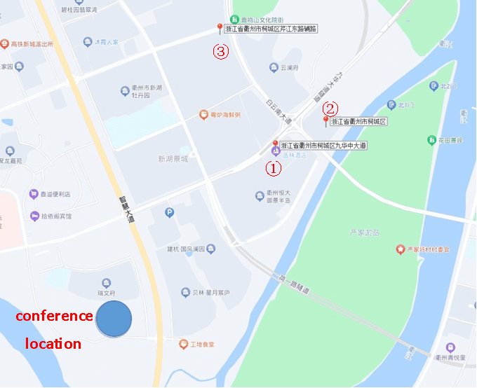 Address: 327 Qinjiangdong road, Kecheng District, Quzhou (衢州开元阿缇客酒店,浙江省衢州市柯城区芹江东路 327 号) Around 7 min drive from the conference venue